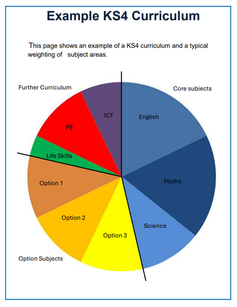 All pupils in KS4 will receive lessons in ‘Core Subjects’ - English, Maths, and Science - and ‘Further Curriculum’ subjects - Life Skills, ICT, P.E, PSHE (Personal, Social, Health and Economic Education), and RSE (Relationships and Sex Education).